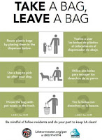 Unattended pet waste may be washed into the storm drain by rain or irrigation run off. This toxic mix of dog waste and water then flows untreated into our local lakes, rivers and the ocean. The bacteria found in the fecal matter negatively affect our aquatic life, those who swim at our beaches, the tourism industry and our economy. The Take a Bag, Leave a Bag program aims to involve local community members in helping to prevent this “toxic soup” from making its way into our waterways in order to keep our local environment safe and clean for all to enjoy.